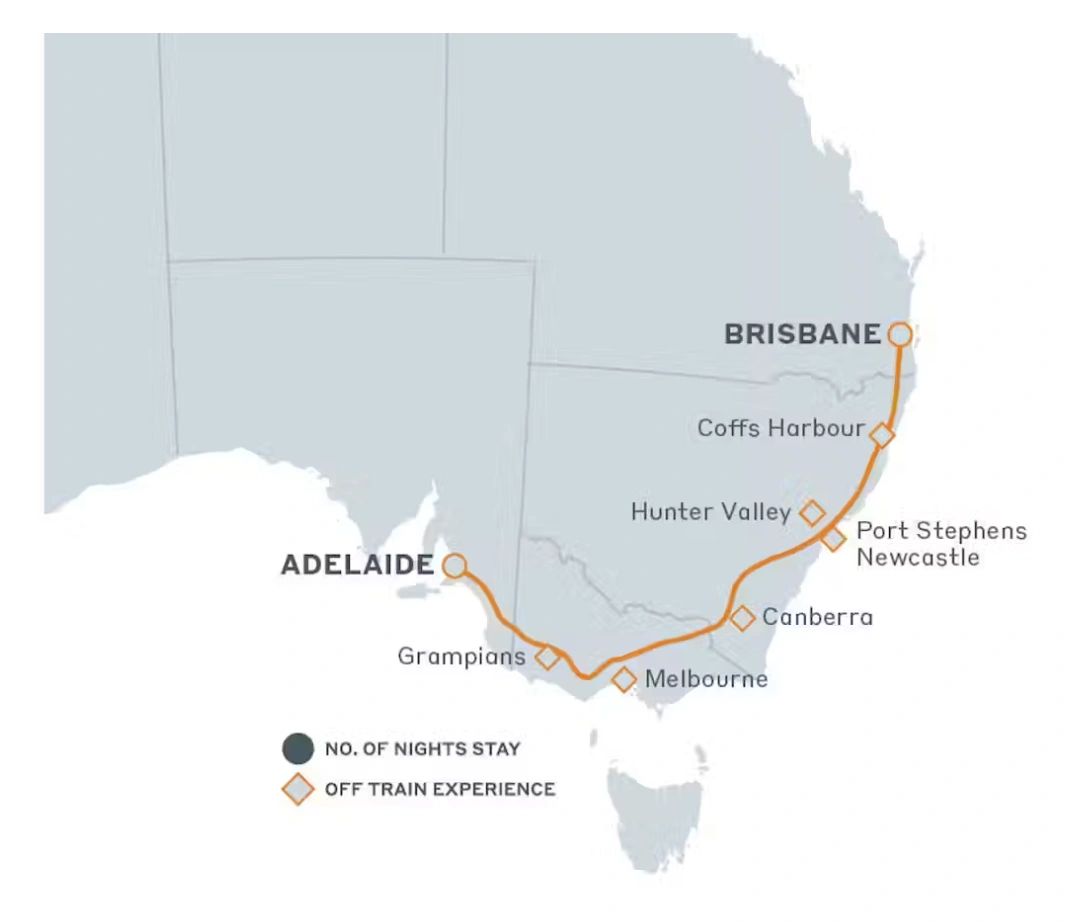 The Great Southern journeys between Adelaide and Brisbane, showcasing spectacular coastal and inland scenery and stopping along the way for guests to embark on memorable off-train experiences. This is a true summer journey of discovery, from the rugged eastern coastline to buzzing cities and everything in-between.
