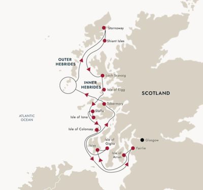 Immerse yourself in the untamed beauty of the Hebrides, where dramatic landscapes meet storied pasts. Highlights include Loch Scavaig on the Isle of Skye, the tranquil Isle of Gigha, and the sacred Isle of Iona. Discover ancient castles, historic homes, and mysterious standing stones, all while appreciating Scotland’s cultural treasures — whisky, tartan, and tweed.